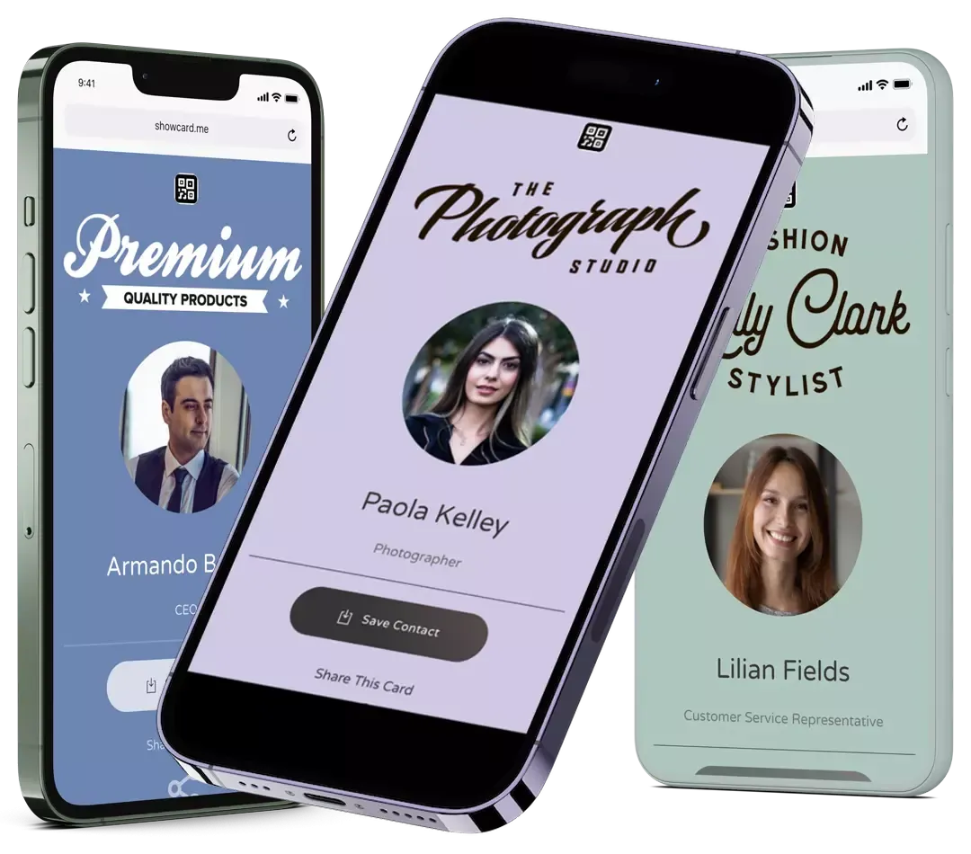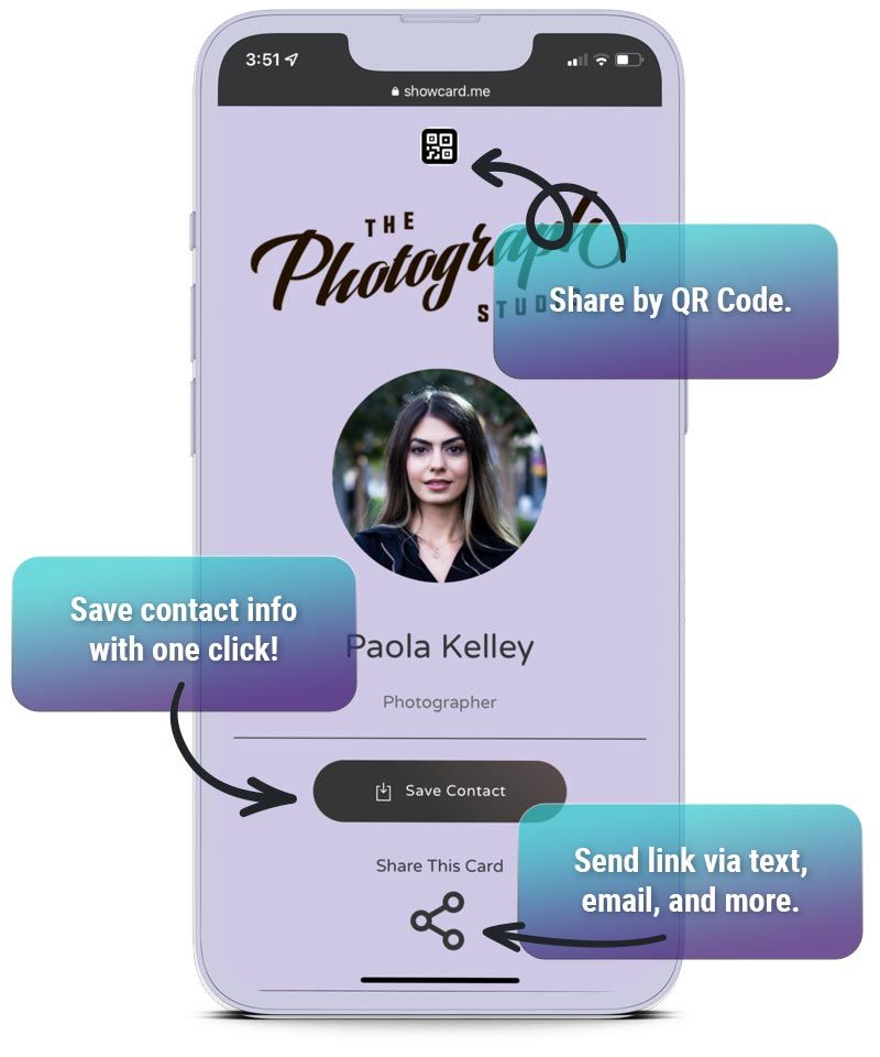 Personalize your Eco-Friendly digital business cards with your headshot and logo, and share them instantly. Recipients can save contact information in one click.
